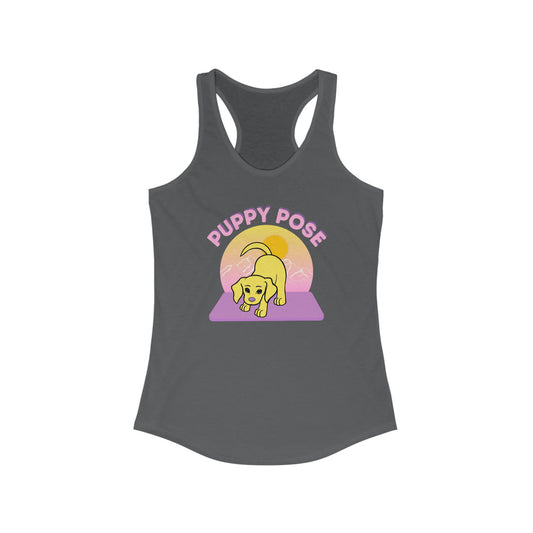 Puppy Pose with Yogi the Rescue Puppy Yoga Mascot Mountain Seen Women’s Tank Top